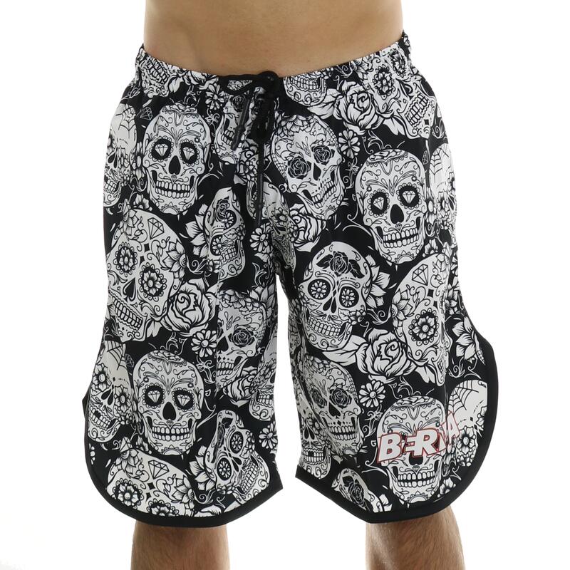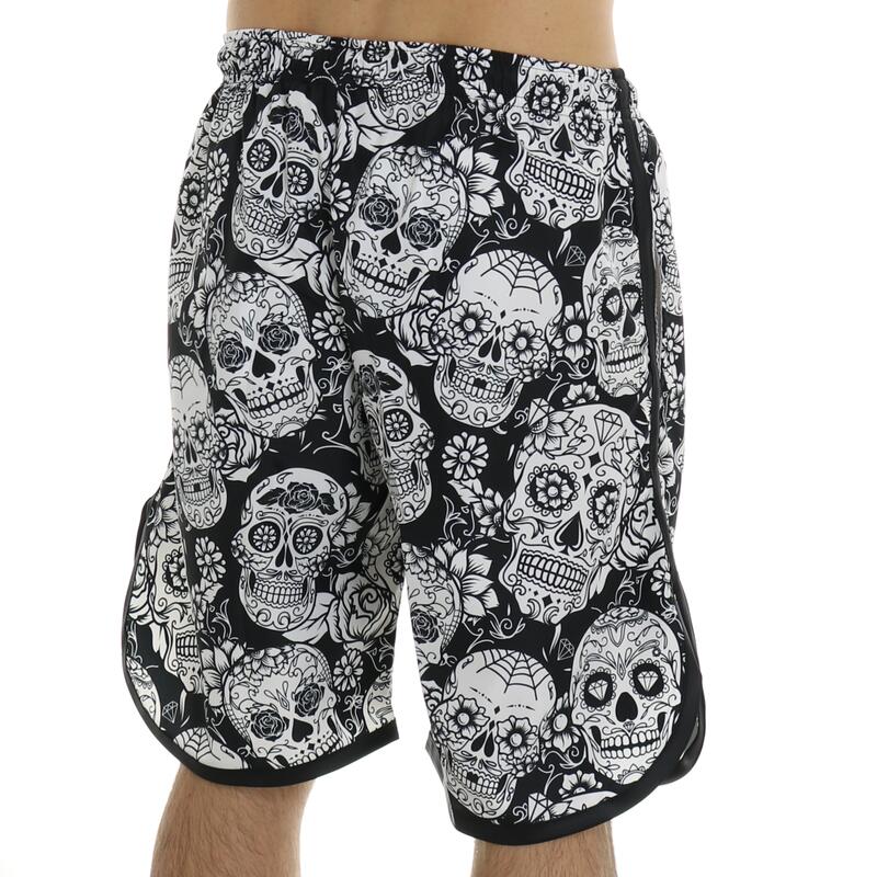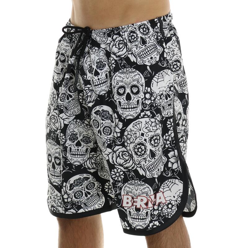 Shorts mare in fantasia, vita elasticizzata con coulisse esterna, tasche laterali a filetto foderate in mesh. Vestibilità regular.