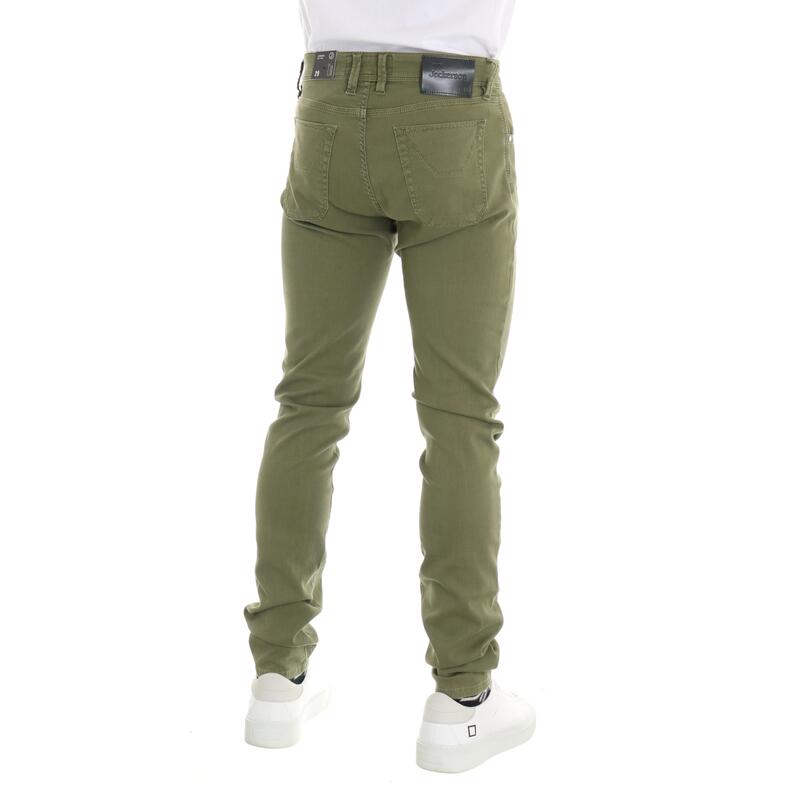 Pantalone cinque tasche in tinta unita operata, vita media, salpa a contrasto, chiusura con zip e bottone.Vestibilità slim.