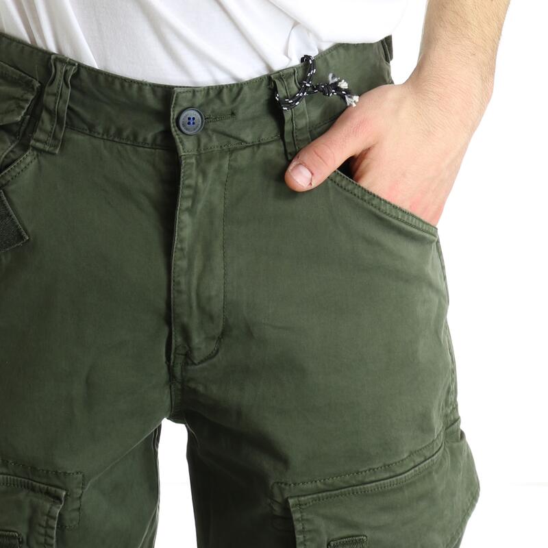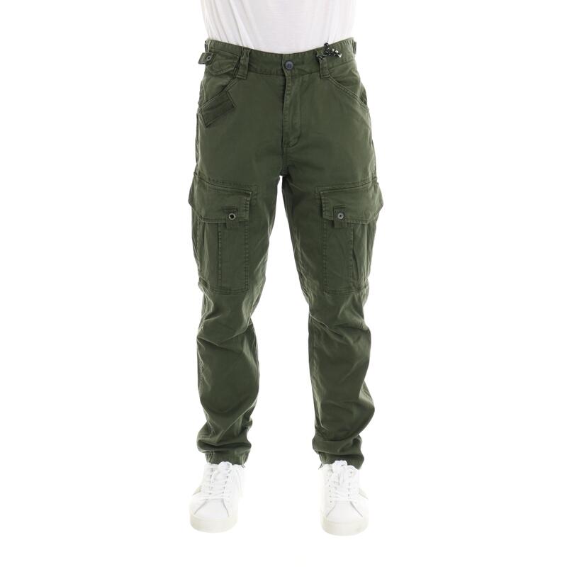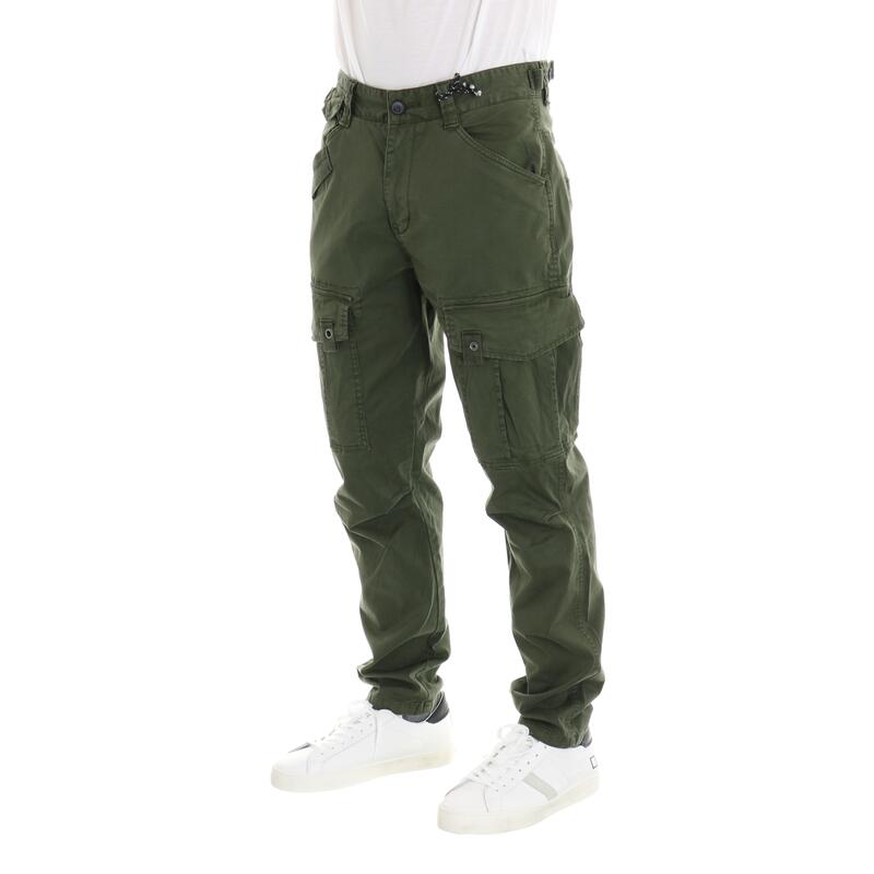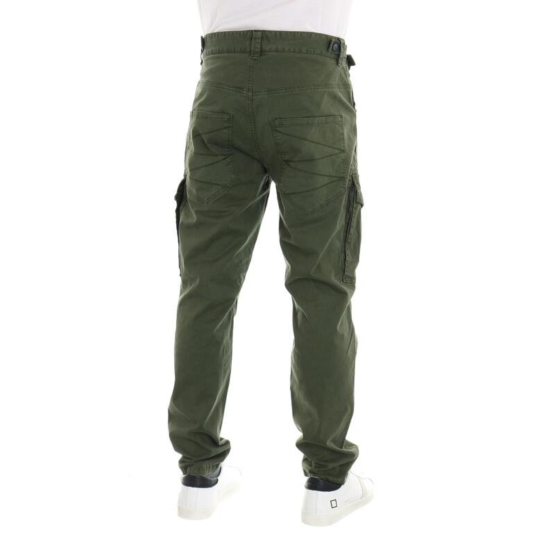 Pantalone con tasche laterali, in cotone stretch tinta unita, vita media. Vestibilità regular.