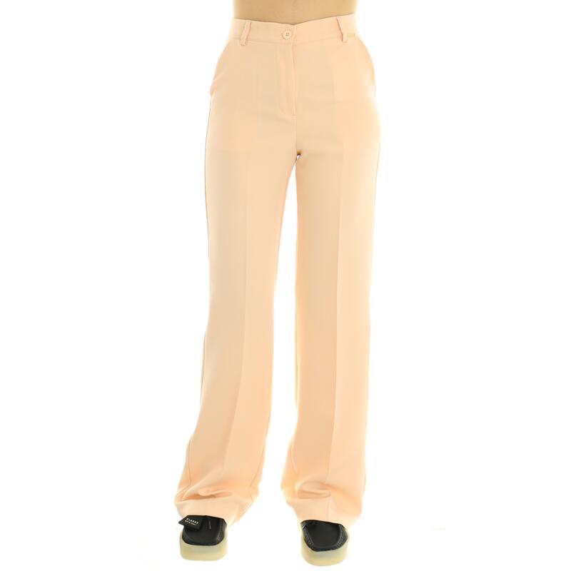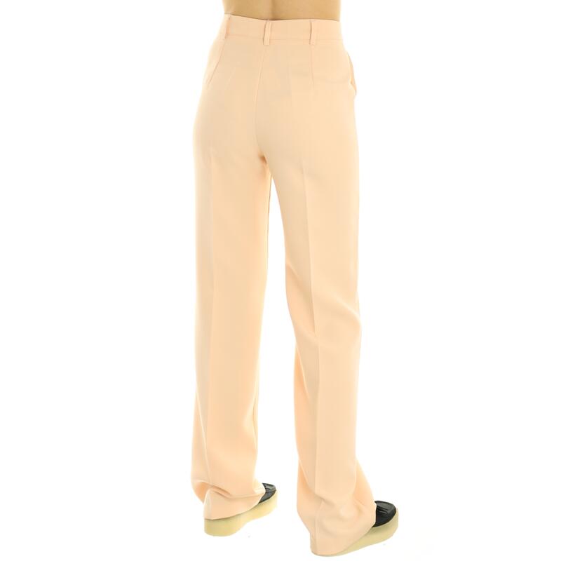 Pantalone a palazzo, vita alta, tasche america, cinturino con passanti, chiusura con bottone. Vestibilità regular.