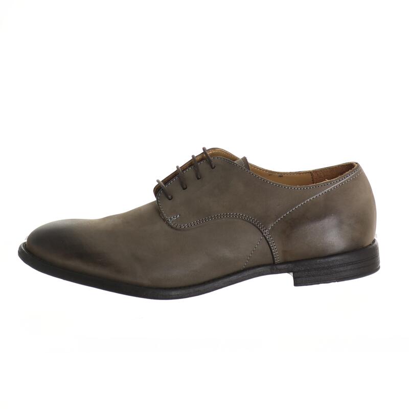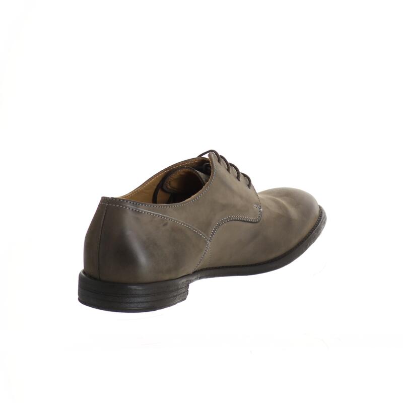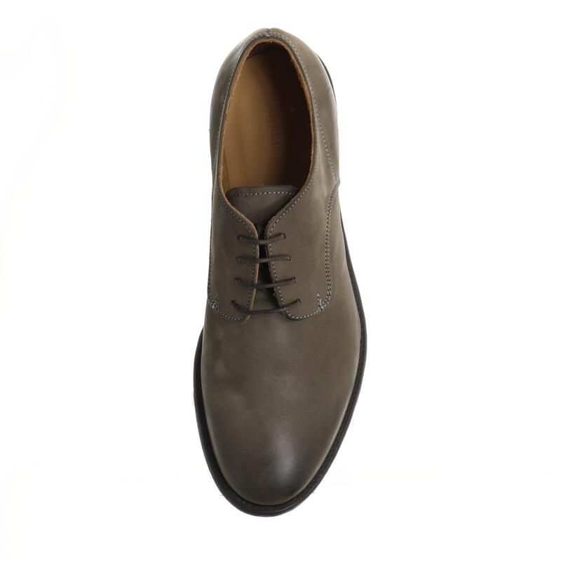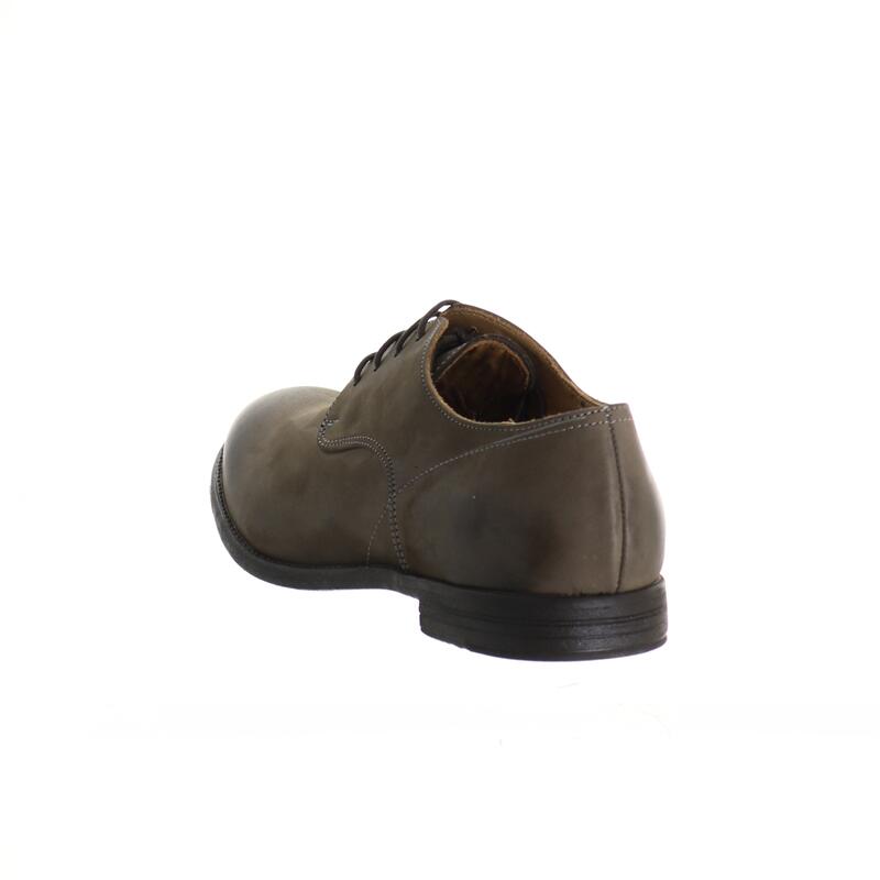 Scarpa stringata in pelle con suola in gomma effetto cuoio antiscivolo, calzata abbondante.