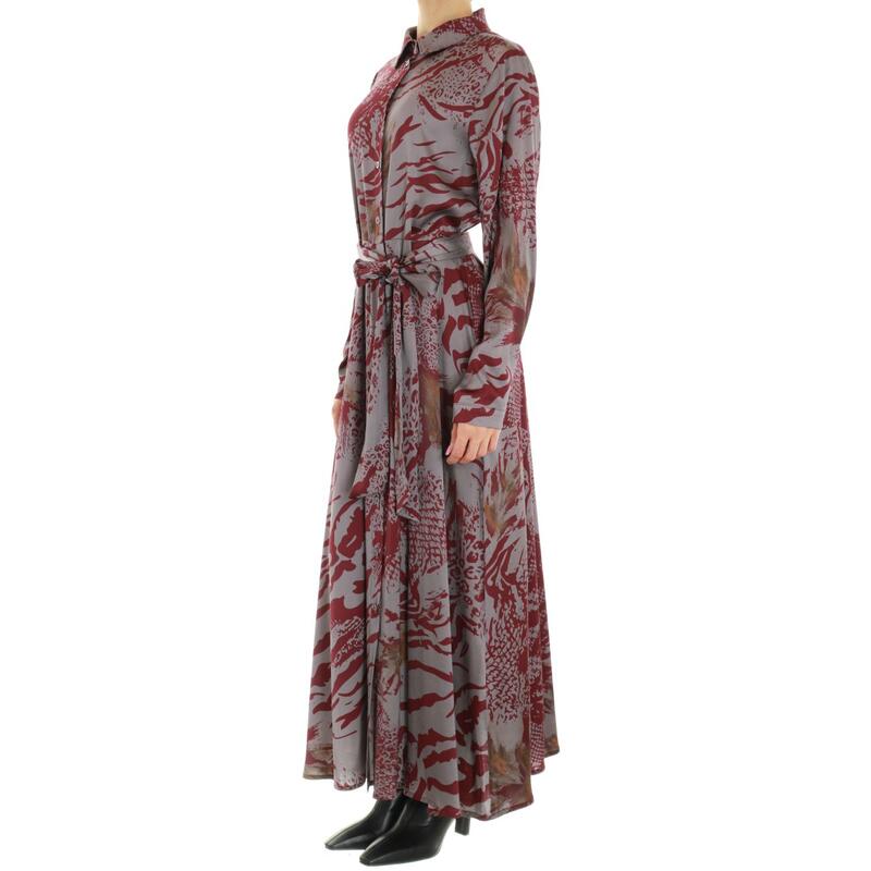 Abito lungo modello camicia in fantasia optical. Vestibilità regular.
