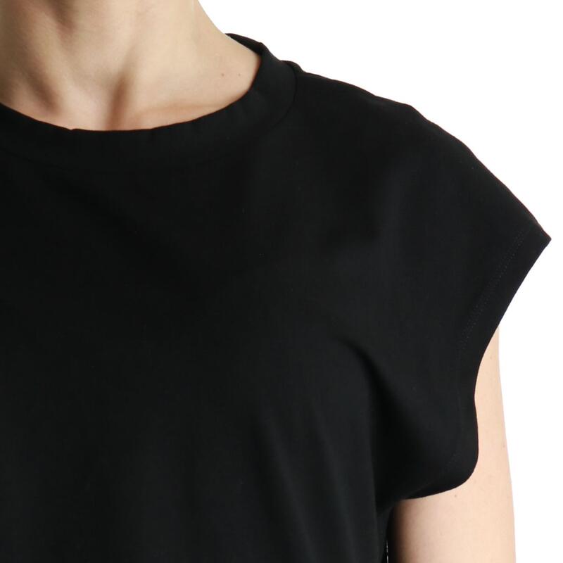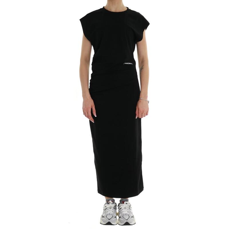 Vestito stretch lungo, mezza manica, logo laterale. Vestibilità slim.