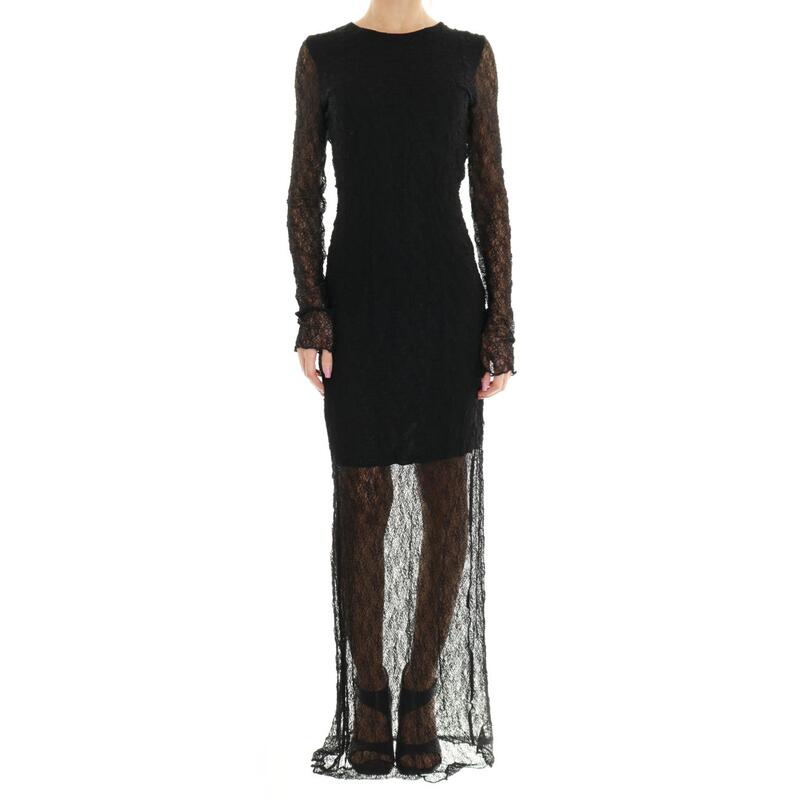 Abito lungo in pizzo con sottoveste. Vestibilità slim.