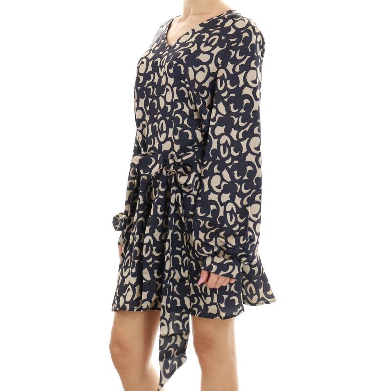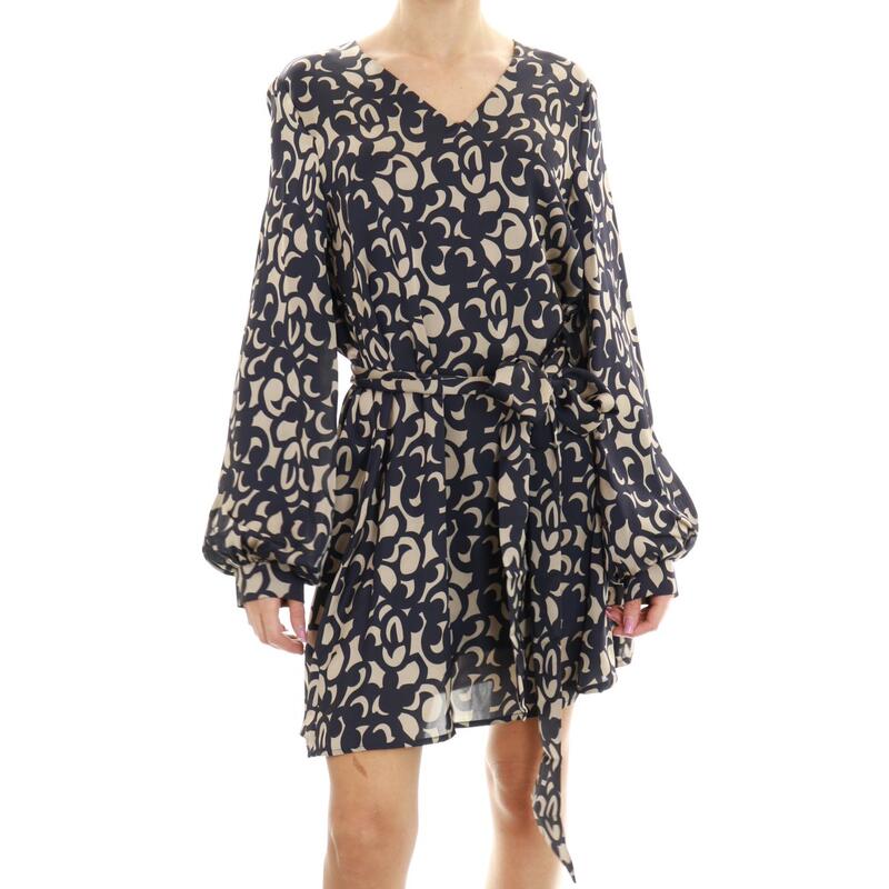 Vestito a maniche lunghe con scollo a V, cintura in vita. Vestibilità regular.