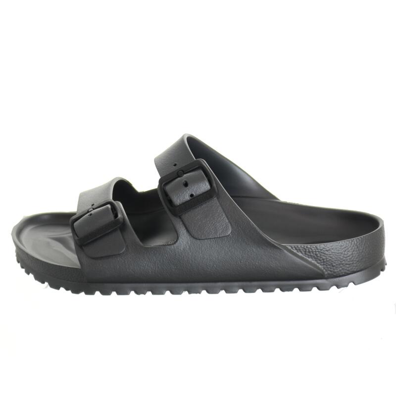 Sandalo in gomma con due cinturini con fibbie ad ardiglione coordinato.