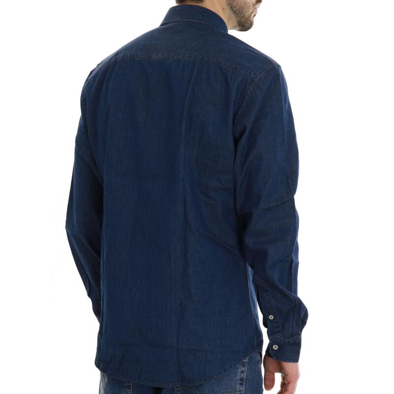 Camicia in denim non stretch, lavaggio scuro. Vestibilità regular.