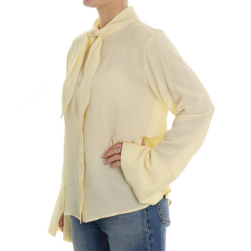 Blusa in viscosa con nodo sul collo, bottoni. Vestibilità regular.