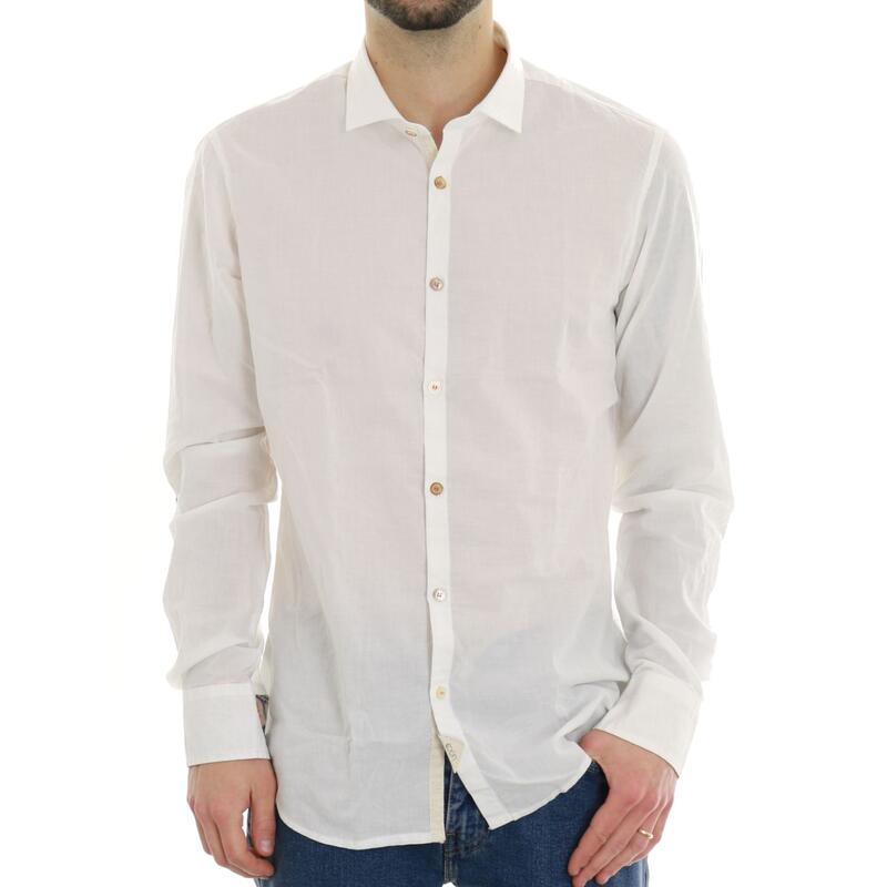 Camicia a maniche lunghe, collo inglese, toppe sui gomiti a contratso. Vestibilità slim.