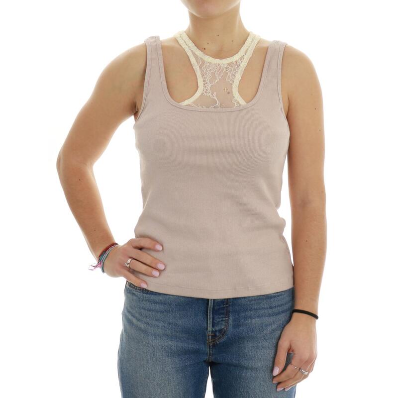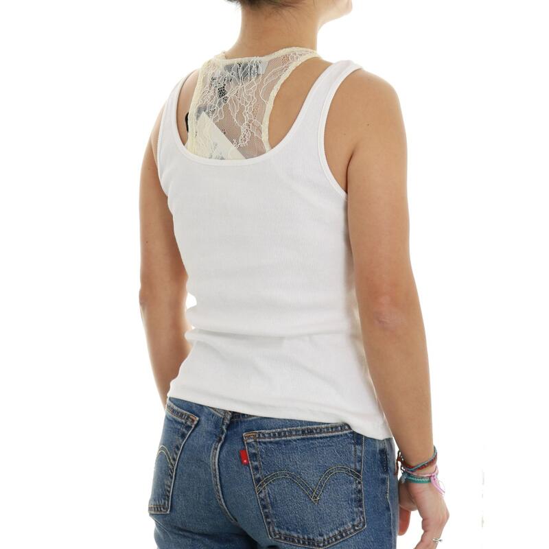 Canotta a costine con dettaglio pizzo. Vestibilità slim.
