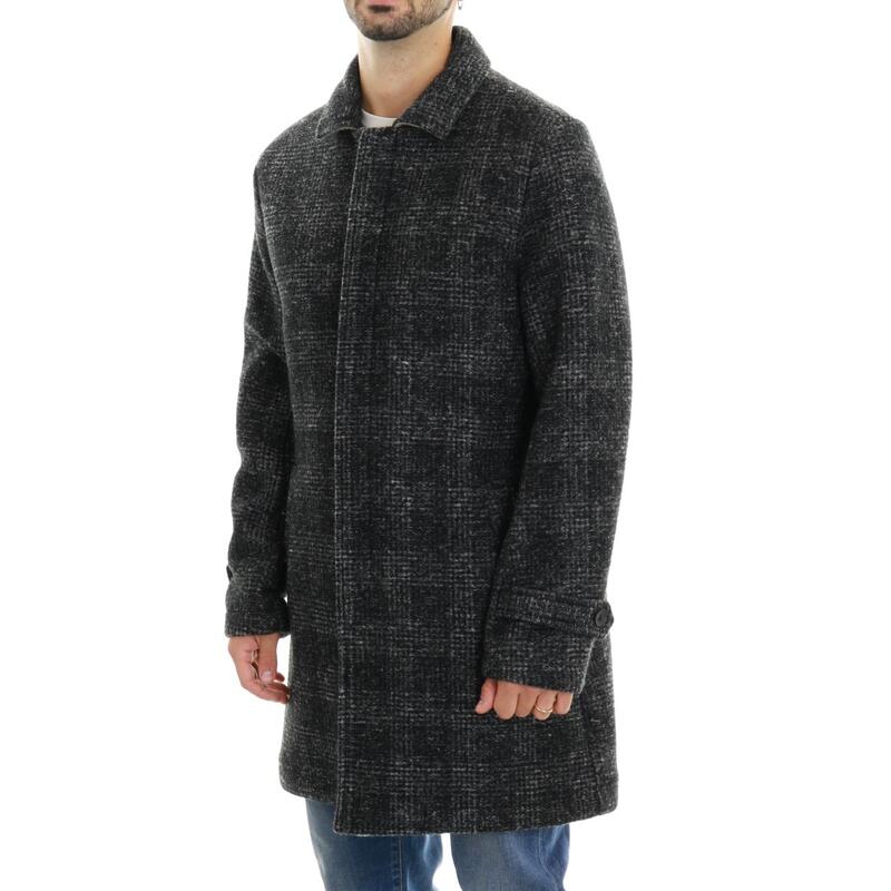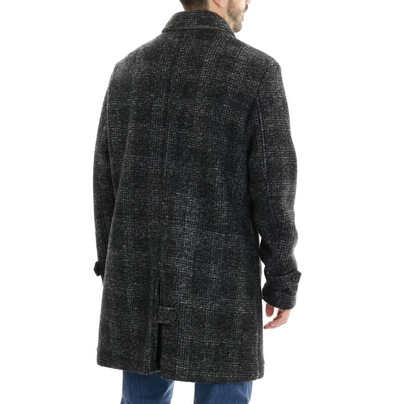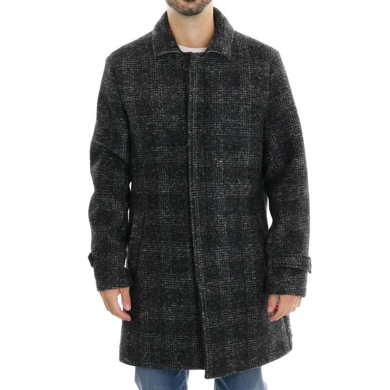Cappotto lungo in fantasia checked, chiusura con bottoni coperti. Vestibilità regular.