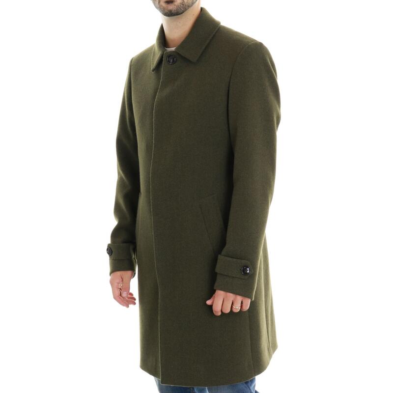 Cappotto con colletto, chiusura con bottoni coperti. Vestibilità regular.