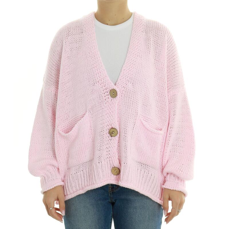 Maglia aperta in cotone con scollo a V e tasche. Vestibilità over.