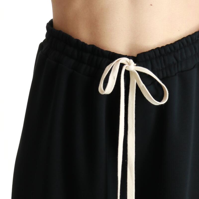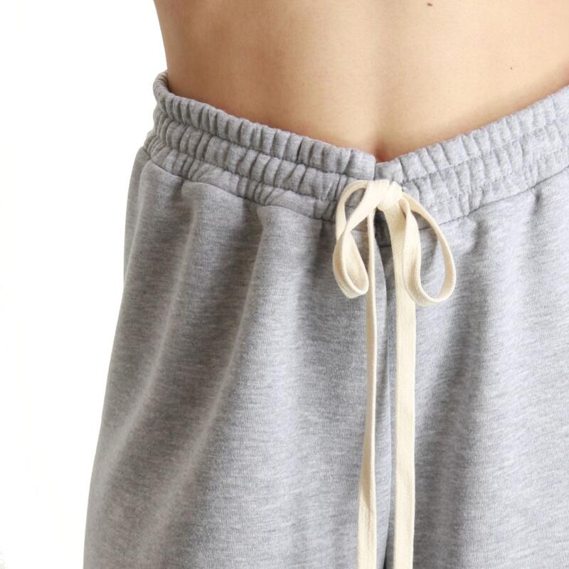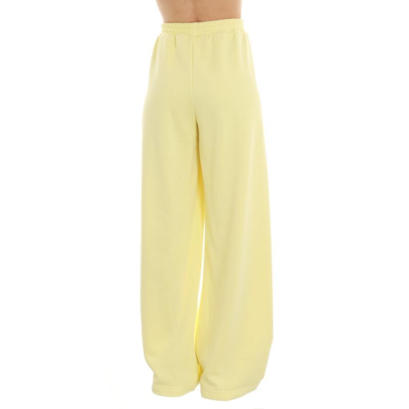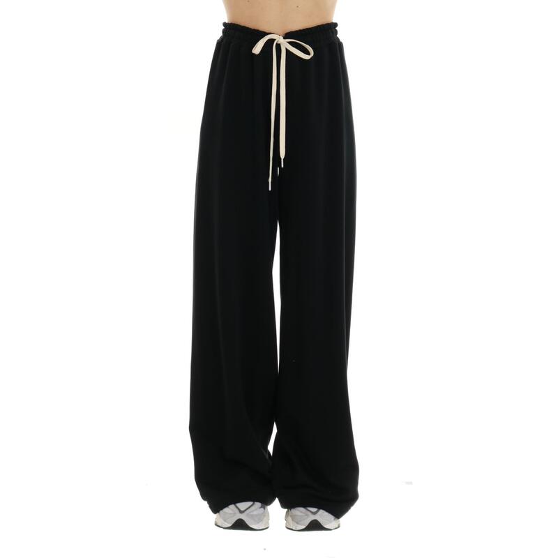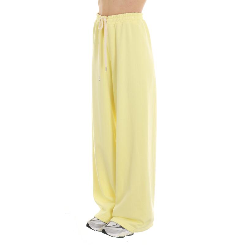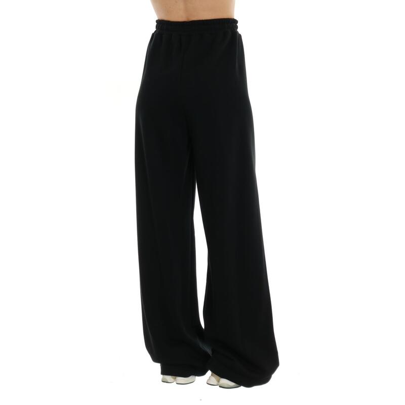 Pantalone a palazzo in felpa, vita alta con elastico. Vestibilità regular.