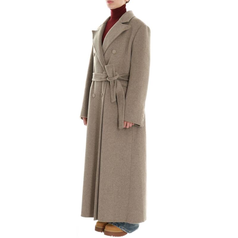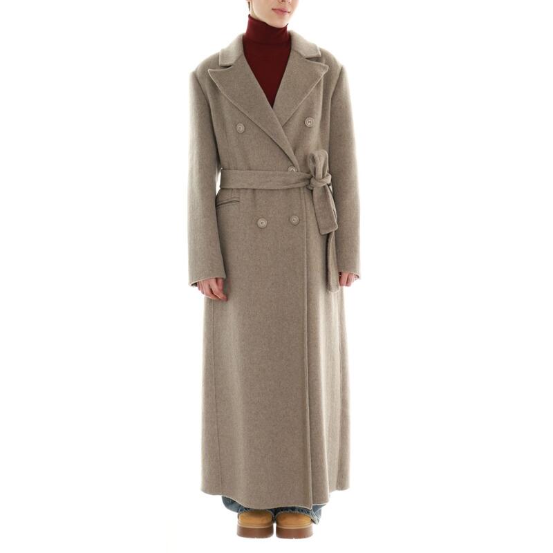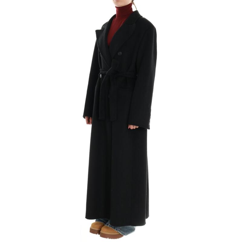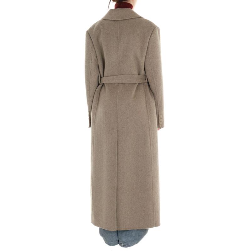 Cappotto lungo in lana hand made, chiusura con bottoni doppiopetto e cintura. Vestibilità regular.