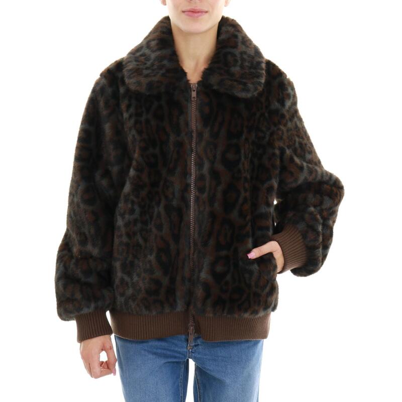 Ecopelliccia con zip e colletto, in fantasia. Vestibilità regular.