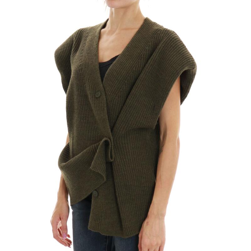 Maglia aperta smanicata con bottoni e spalline imbottite. Vestibilità regular.