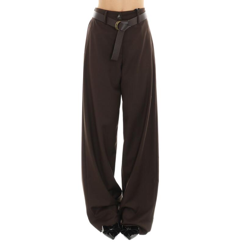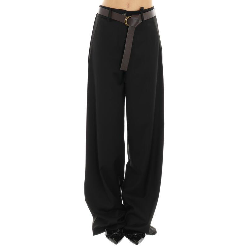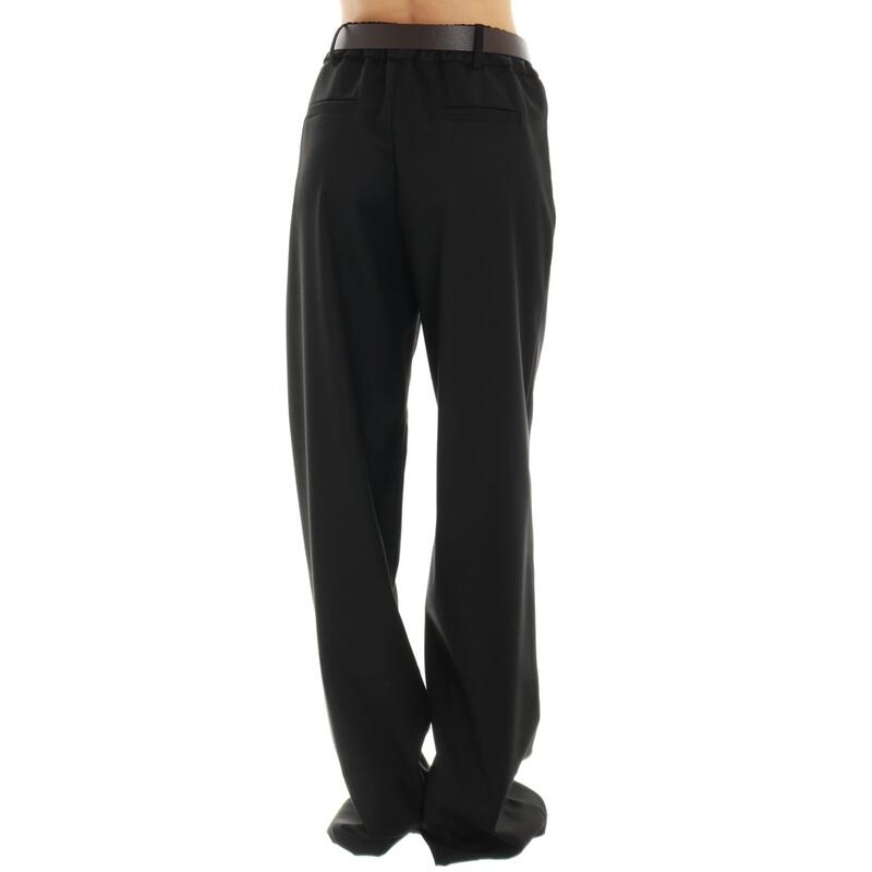 Pantalone a palazzo a vita alta con elastico in vita e cintura. Vestibilità regular.
