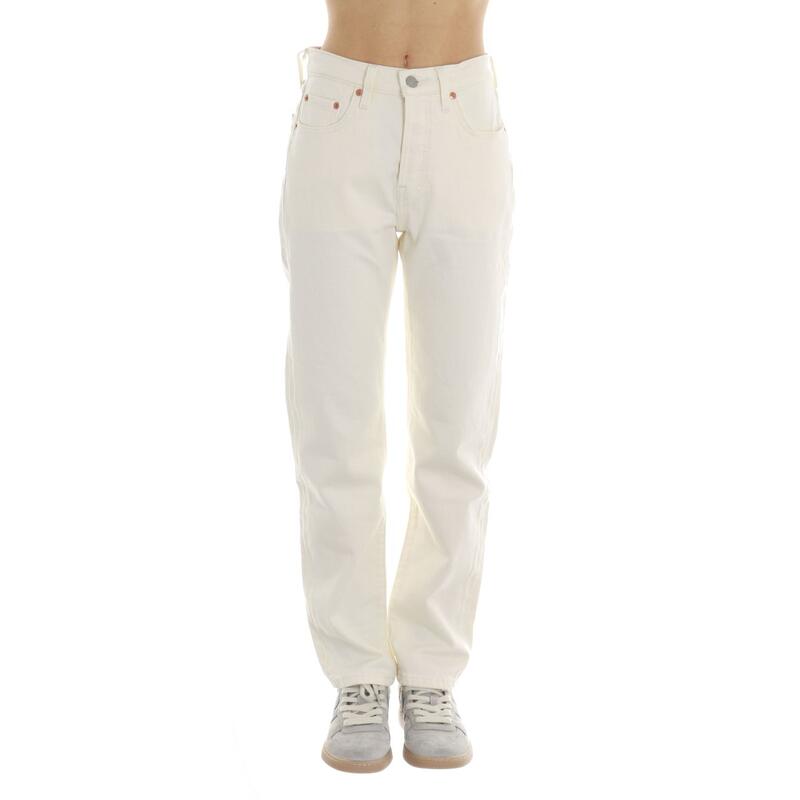 Jeans non stretch, vita alta, chiusura con bottoni. Vestibilità regular.