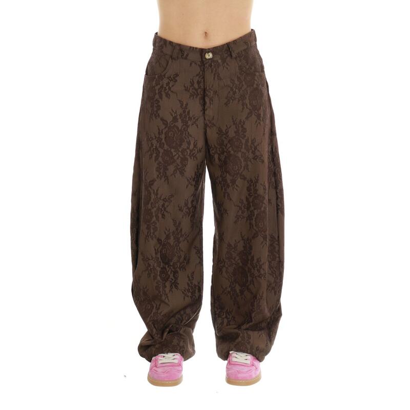 Pantalone balloon in pizzo. Chiusura frontale con zip e bottone. Vita media. Tasche laterali e tasche posteriori applicate. Vestibilità regular.
