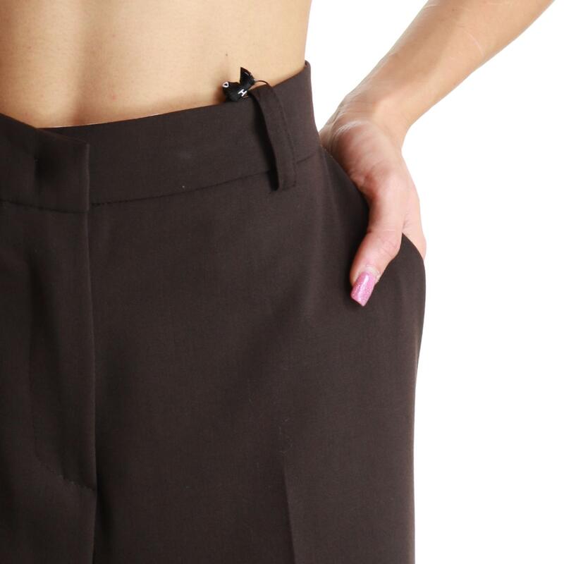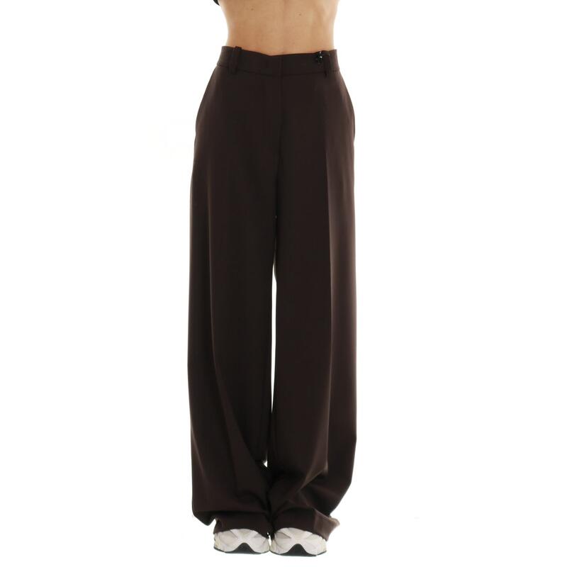 Pantalone a palazzo vita alta, cinturino con passanti. Vestibilità regular.