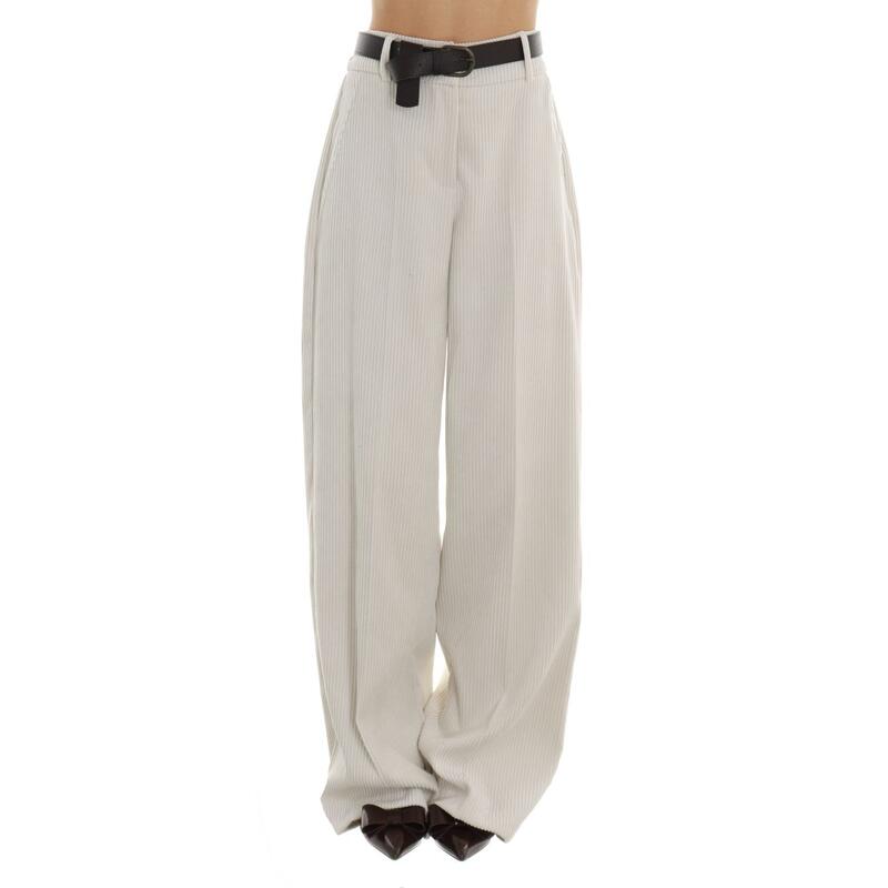 Pantalone a palazzo in velluto, vita alta con elastico dietro. Vestibilità regular.