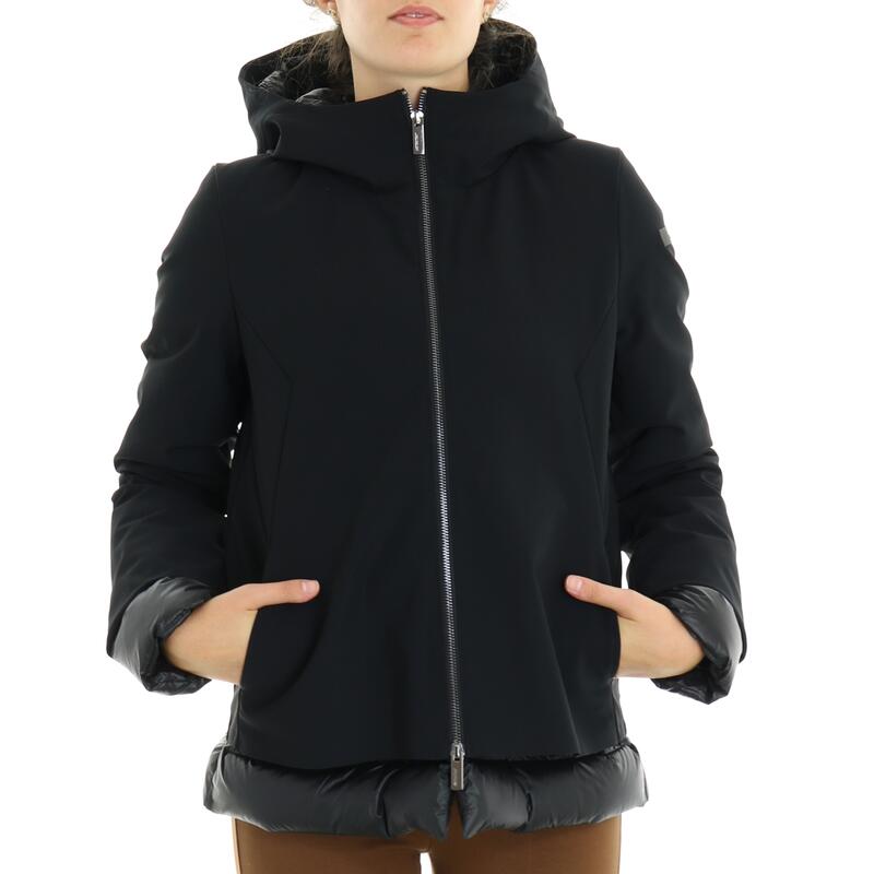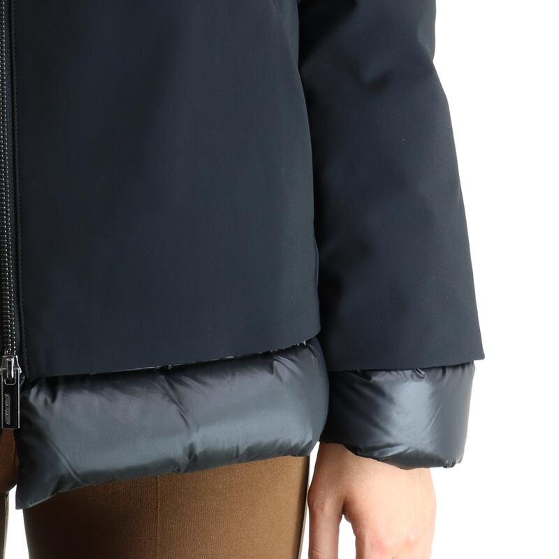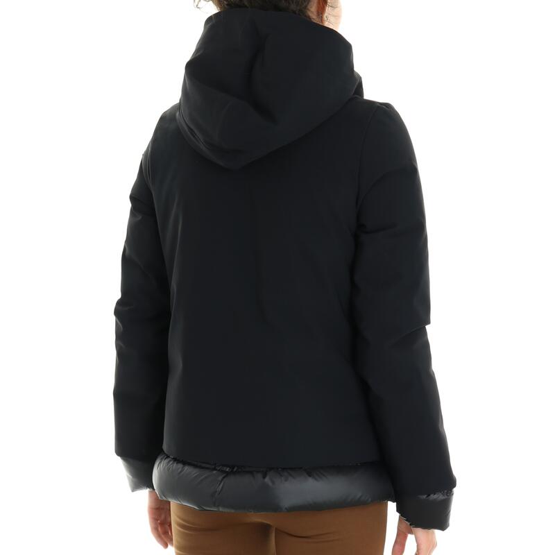 Piumino con cappuccio in tessuto tecnico stretch, impermeabile, traspirante, zip frontale con doppio cursore. Vestibilità slim.