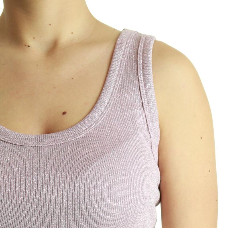 Top a costine in lurex, girocollo. Vestibilità slim.