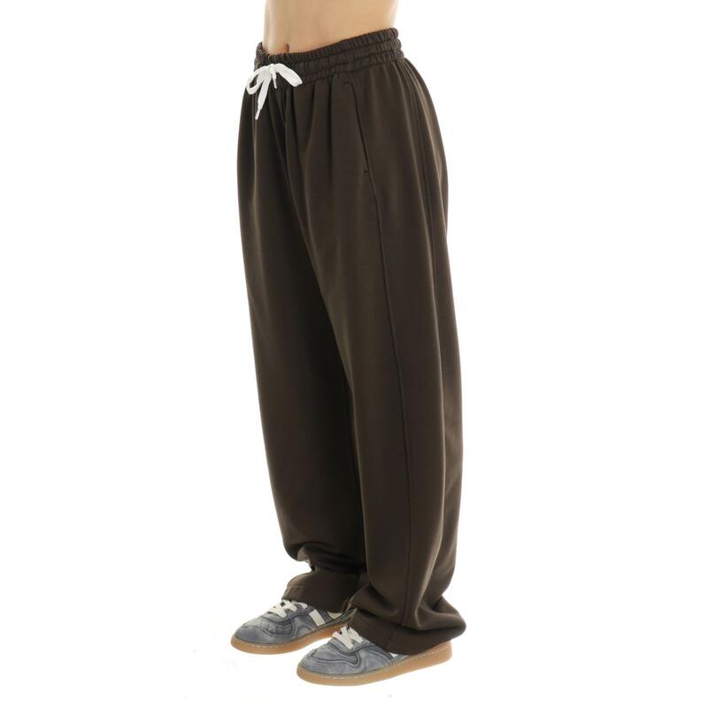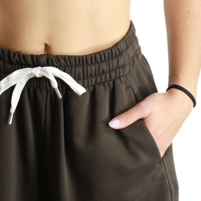 Pantalone in felpa modello barrel, vita alta con elastico. Vestibilità regular.