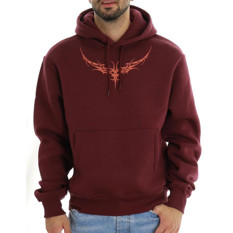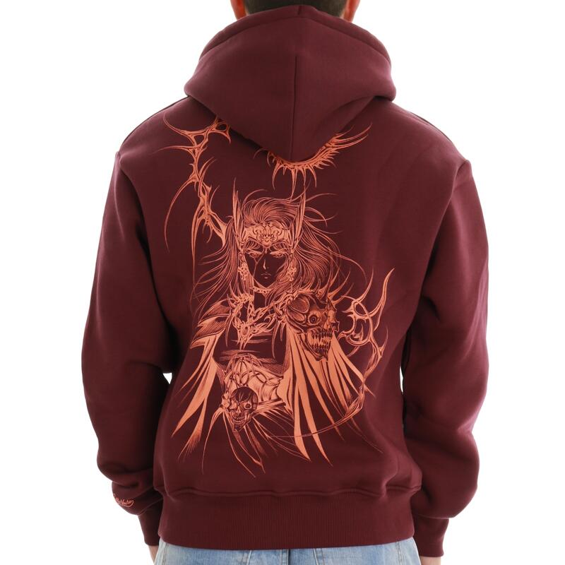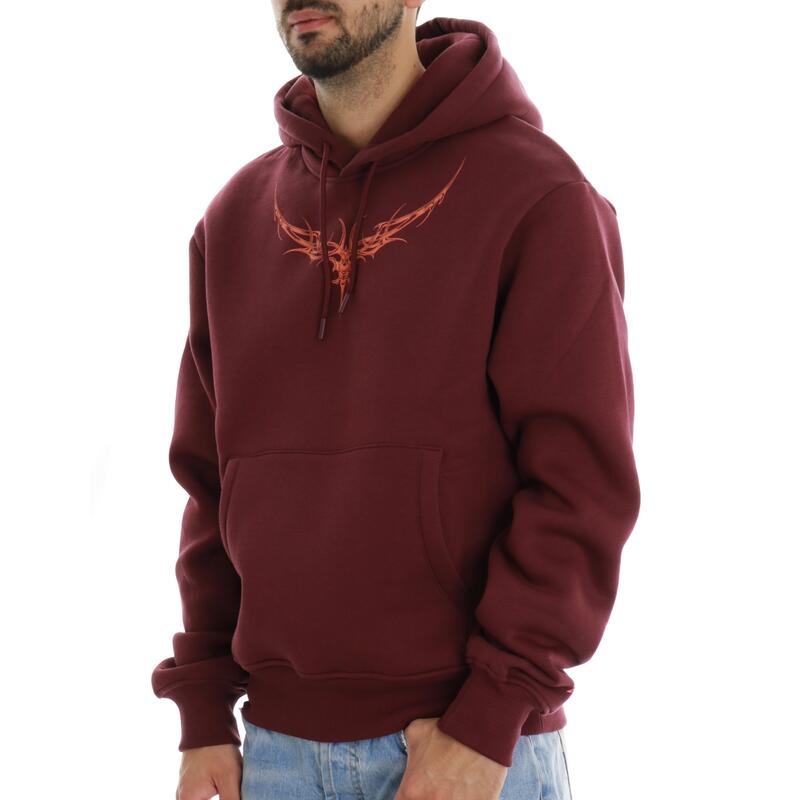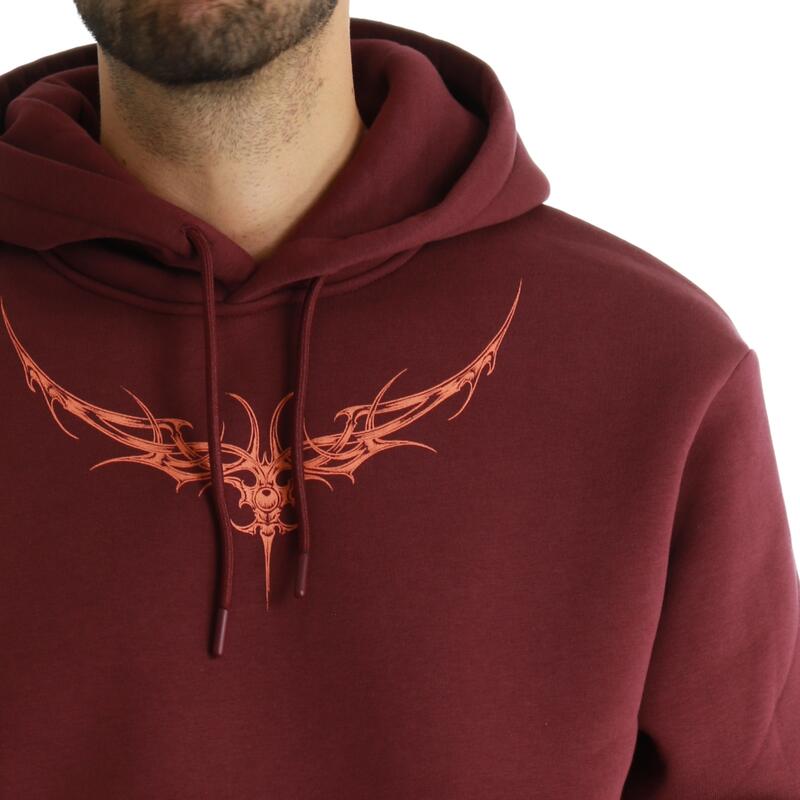 Felpa chiusa con cappuccio, mini logo frontale e maxi stampa dietro. Vestibilità regular.