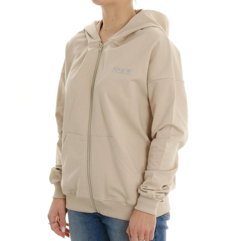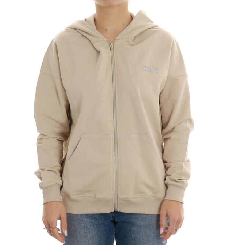 Felpa aperta garzata con zip e cappuccio, tasche e logo. Vestibilità regular.