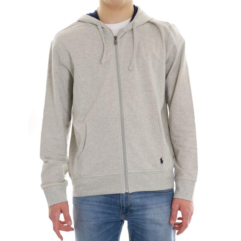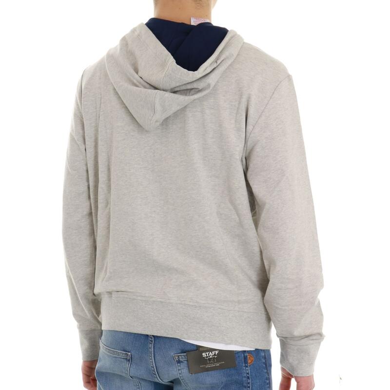 Felpa aperta con zip e caèppuccio, garzata, logo ricamato sulla tasca. Vestibilità regular.