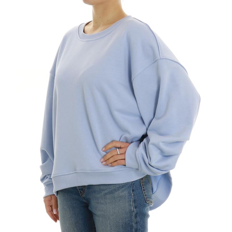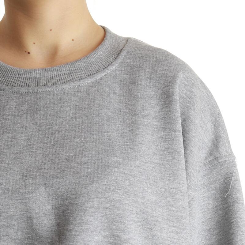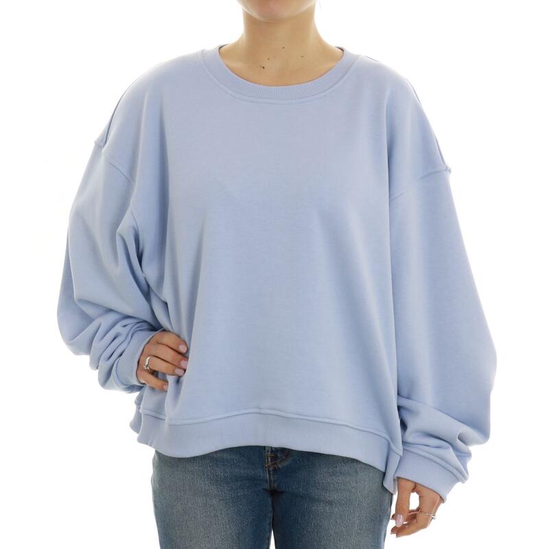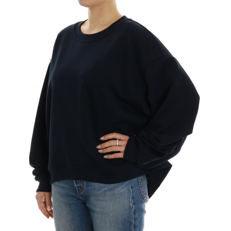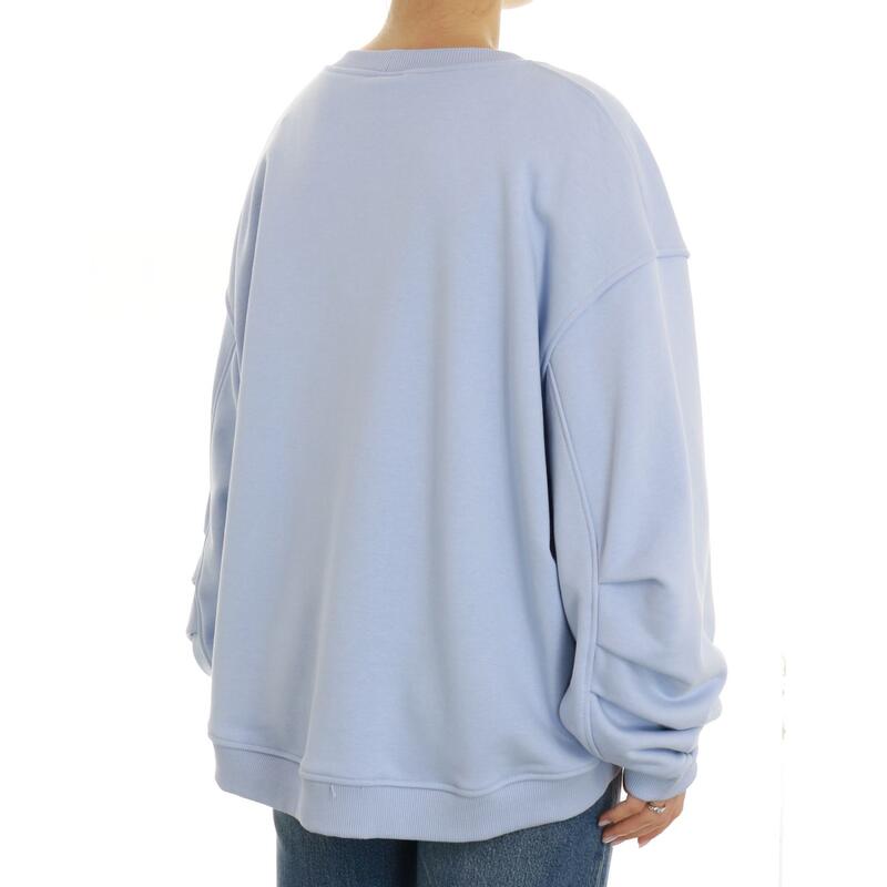 Felpa girocollo garzata, dettaglio arricciatura su maniche. Vestibilità over.