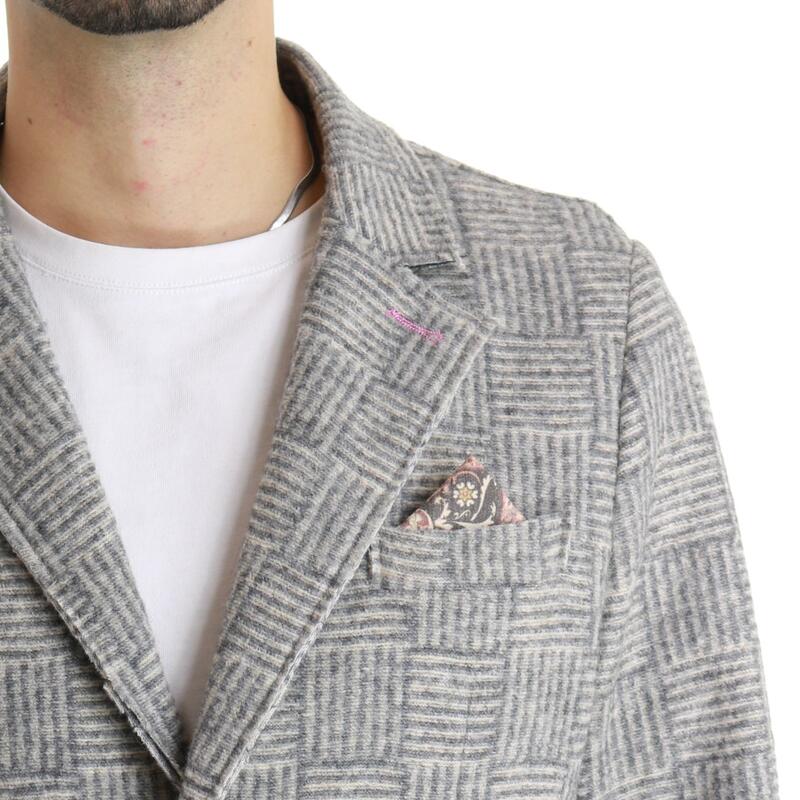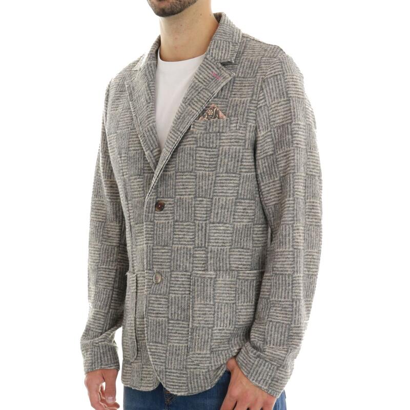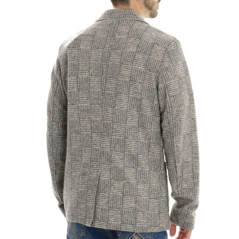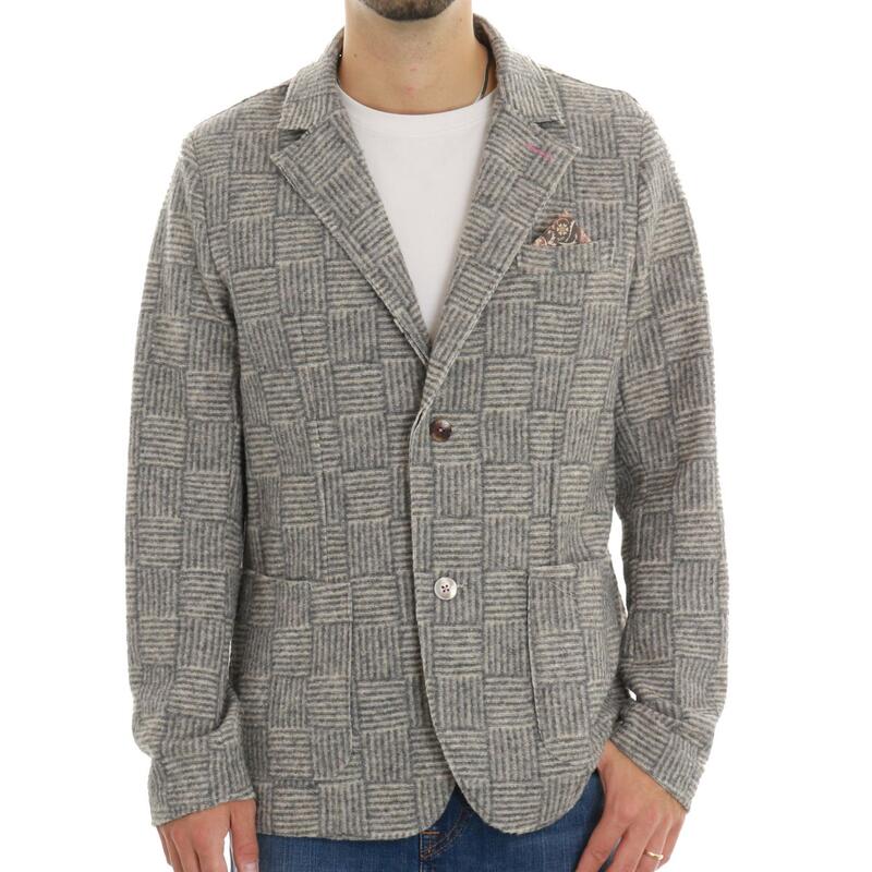 Giacca in maglia fantasia quadretti, chiusura bottoni e rever classico. Vestibilità regular.