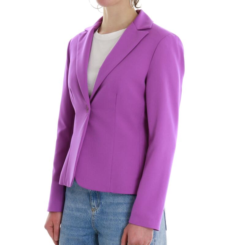 Giacca in tessuto tecnico, rever classico, chiusura con un bottone. Vestibilità slim.