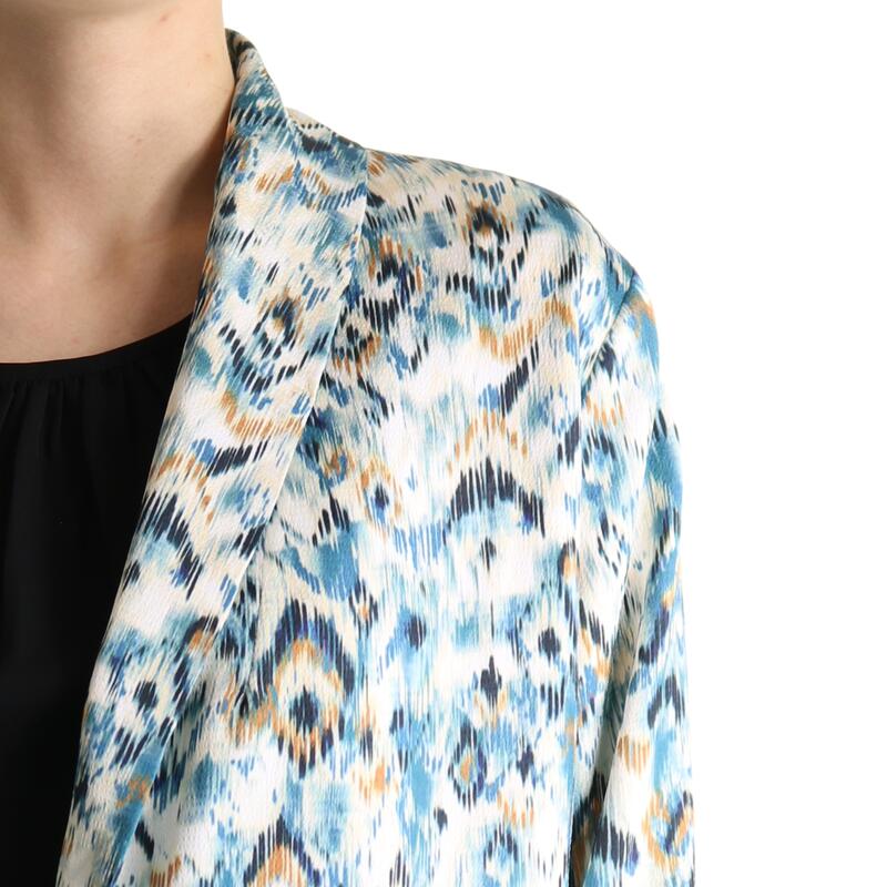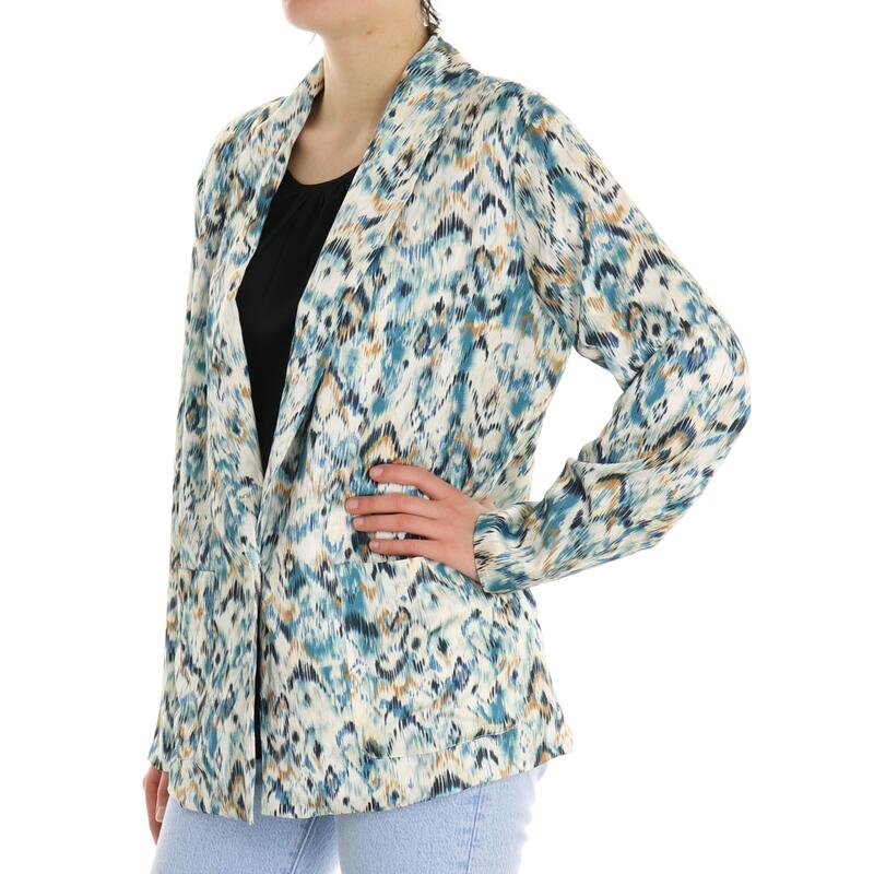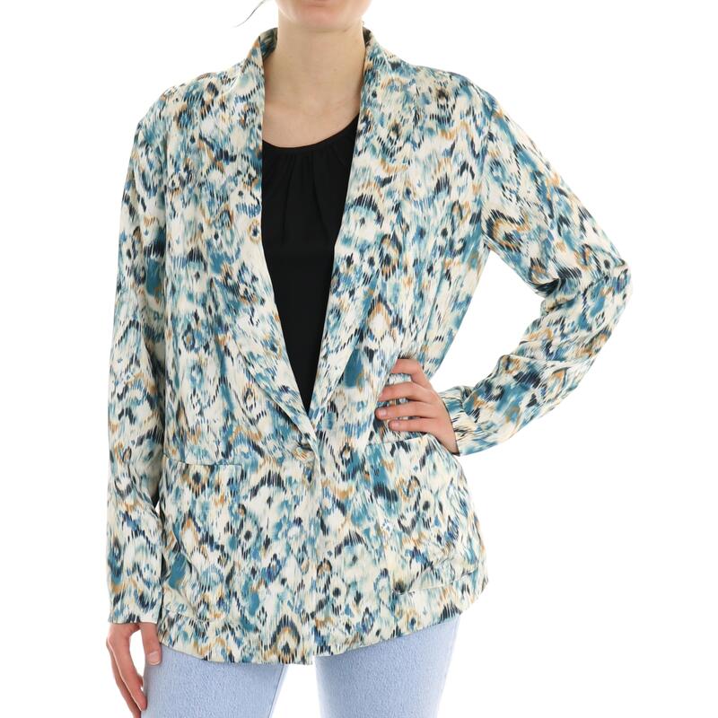 Giacca destrutturata in fantasia stampata all-over, rever classico, chiusura con bottone foderato, tasche patch. Vestibilità regular.