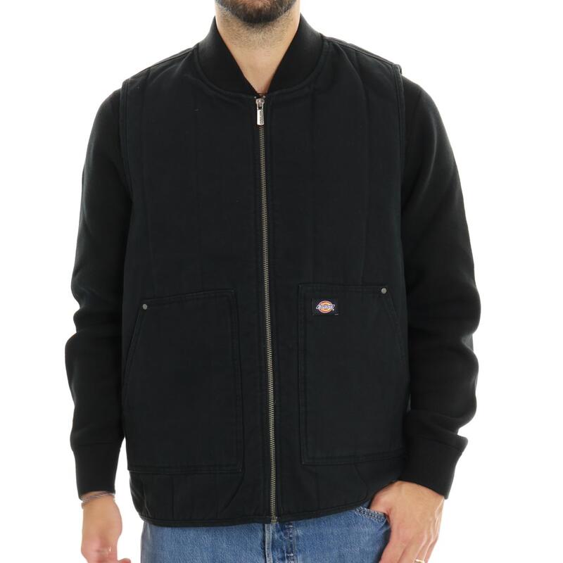 Gilet in canvas con zip e collo bowling. Vestibilità regular.