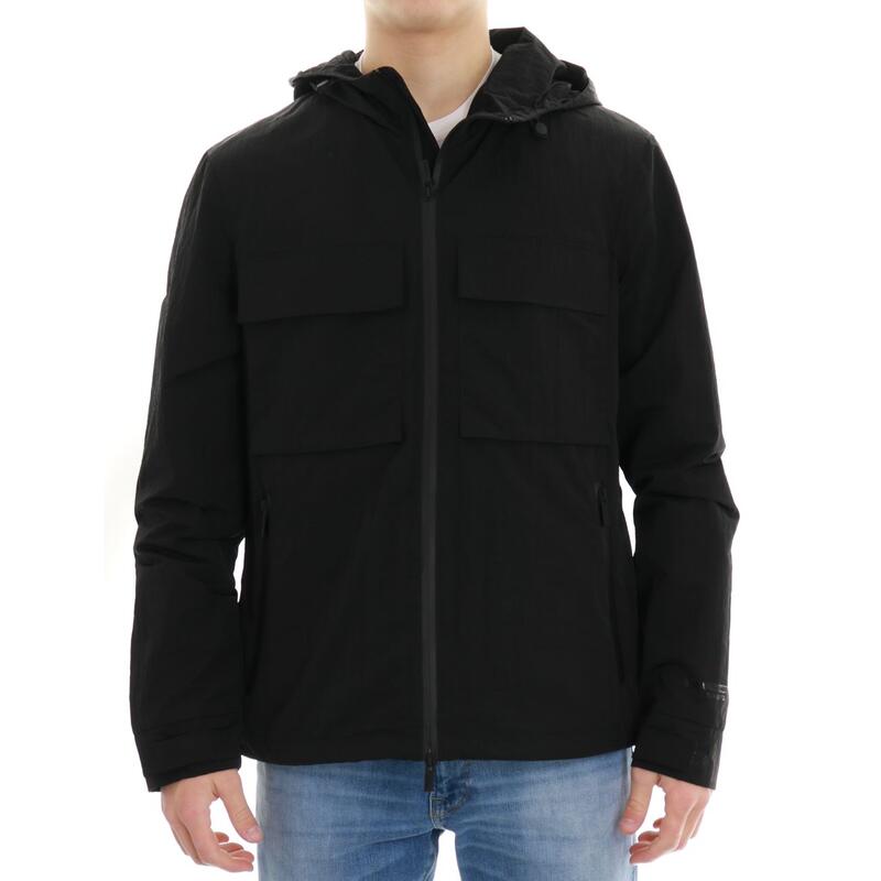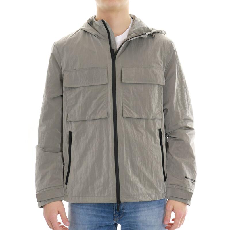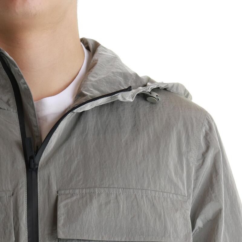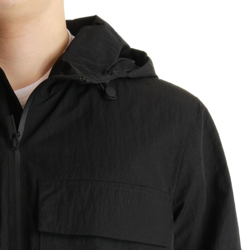 Giubbotto in tessuto tecnico crinkle, con cappuccio e tasche, zip doppio cursore. Vestibilità regular.