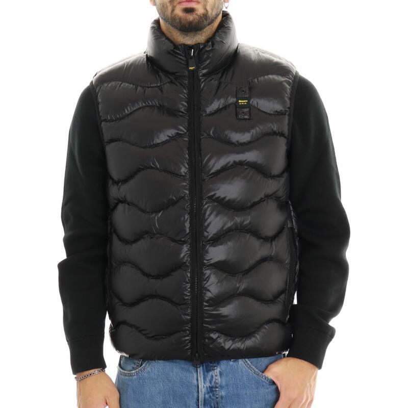 Giubbotto smanicato imbottito in piuma d'oca, filze wave. Vestibilità regular.