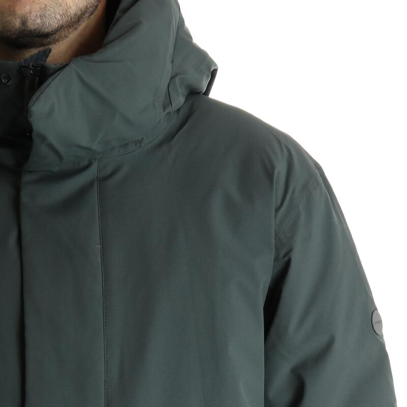Giubbotto in thermore con cappuccio e zip, finiture tono su tono, gusto minimal. Vestibilità regular.