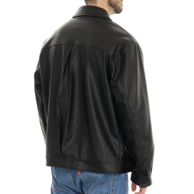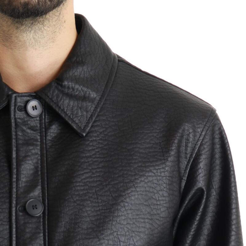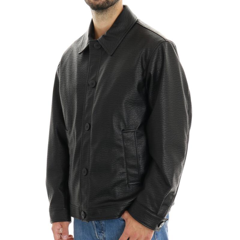 Giubbotto modello bomber con bottoni e colletto, in ecopelle martellata. Vestibilità regular.