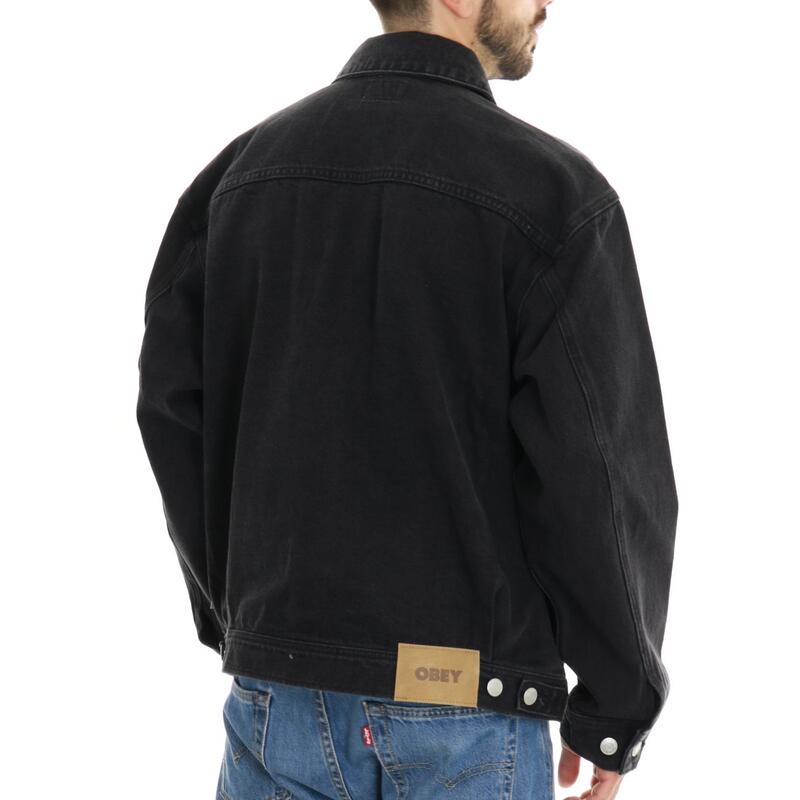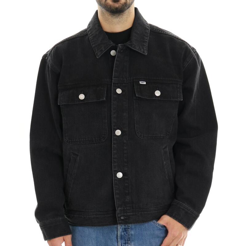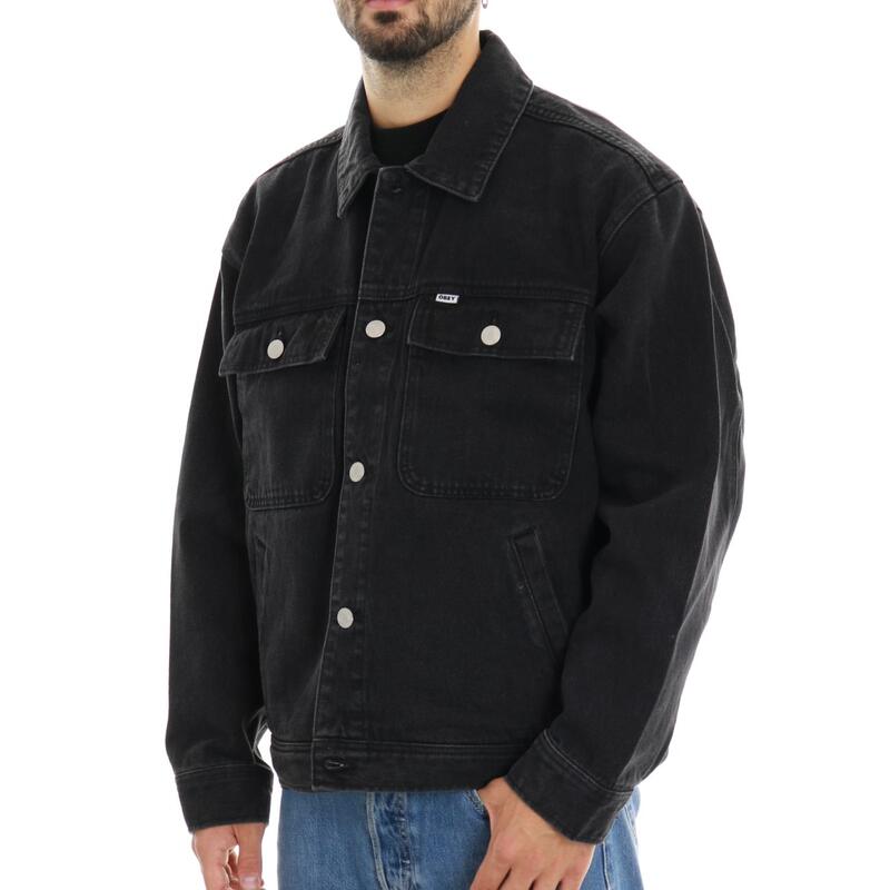 Giubbotto in denim nero con bottoni e tasche, mini logo ricamato. Vestibilità regular.