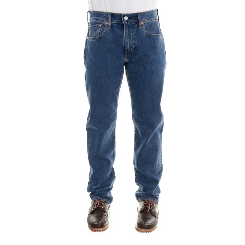 Jeans stretch lavaggio intermedio, vita media, salpa a contrasto, chiusura con bottone e zip. Vestibilità slim.