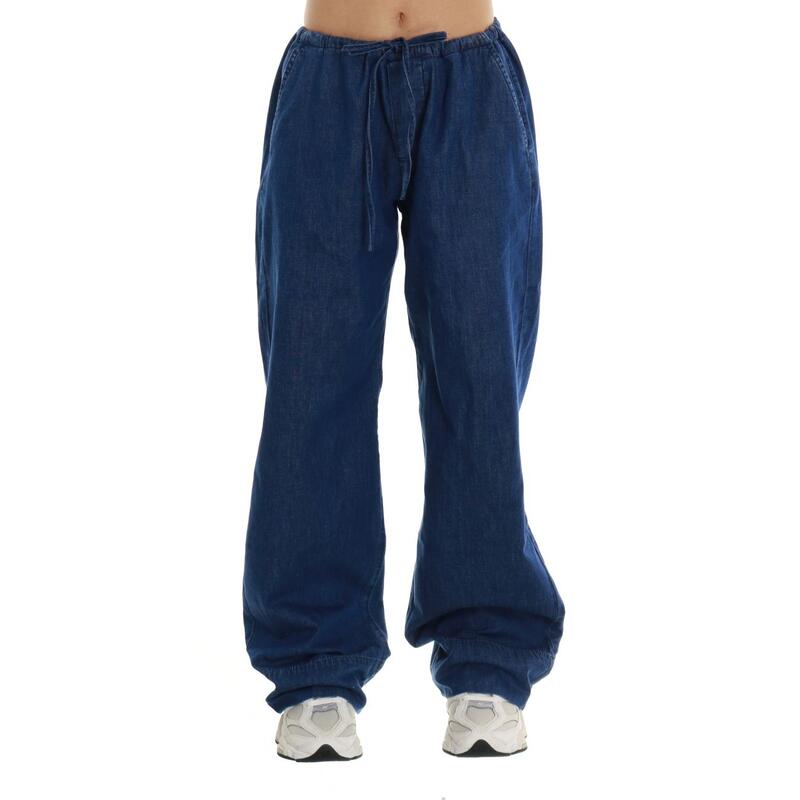 Jeans non stretch leggero, vita alta con coulisse, tasche america. Vestibilità regular.