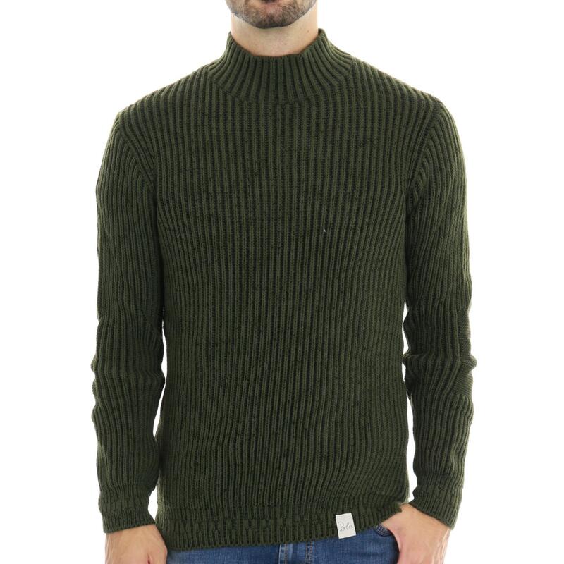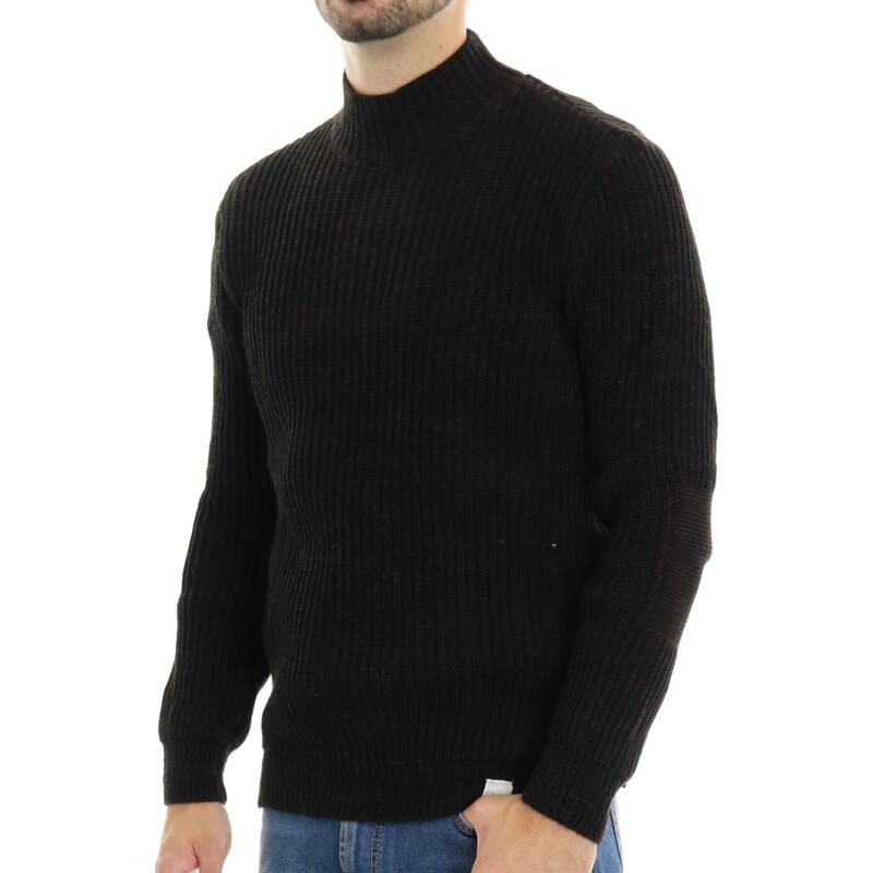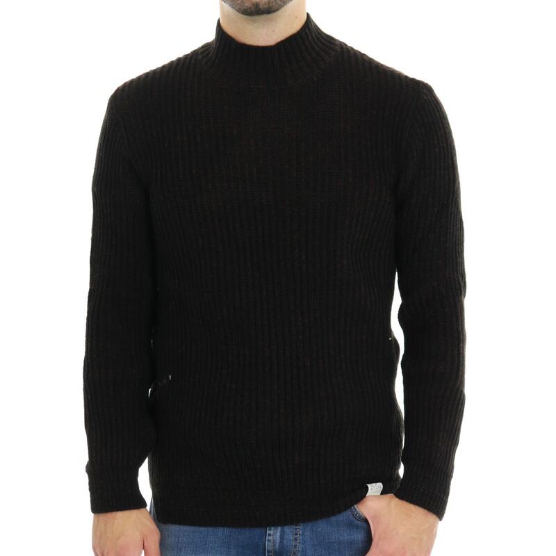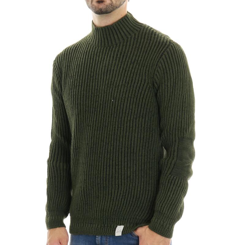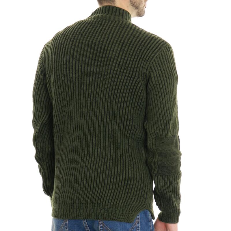 Maglia con collo in piedi, in costa inglese, toppe sui gomiti. Vestibilità regular.