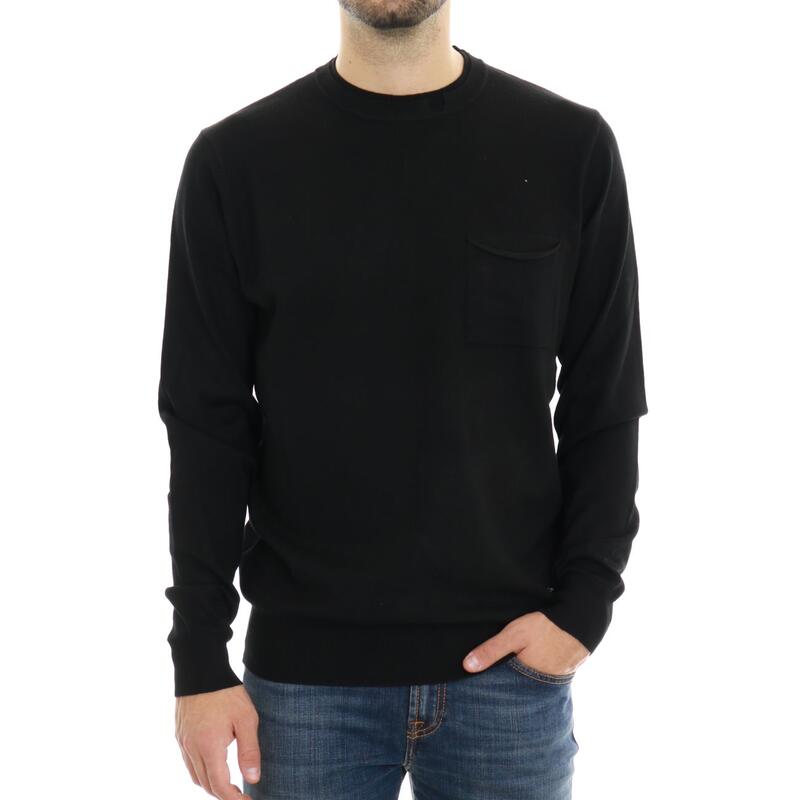 Maglia girocollo in microfantasia tono su tono in rilievo e taschino. Vestibilità regular.