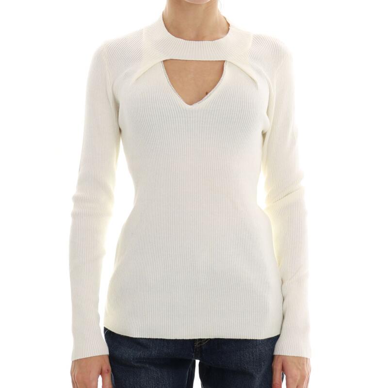 Maglia con collo in piedi e cut-out frontale con strass. Vestibilità slim.