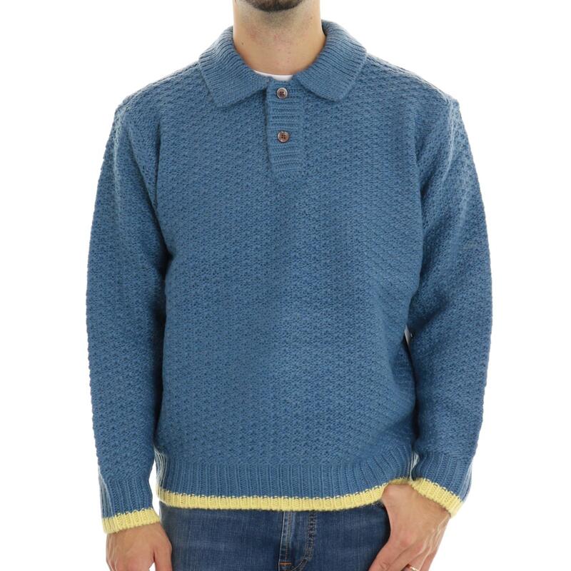 Maglia con colletto e bottoni, fantasia in rilievo tono su tono. Vestibilità regular.