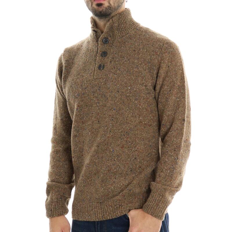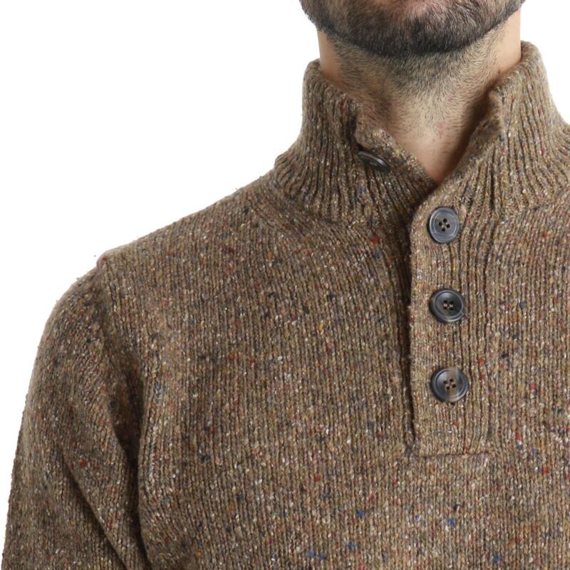 Maglia con collo in piedi e bottoni, fantasia melange. Vestibilità regular.