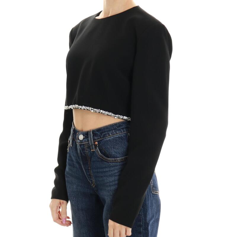 Maglia crop girocollo con pietre applicate. Vestibilità slim.